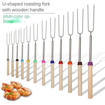 الأكثر مبيعًا شوكة شواء من الفولاذ المقاوم للصدأ في الهواء الطلق عصي محمصة في الهواء الطلق أرجل حية مارشميلو إبرة اسكيمو مقبض خشبي
