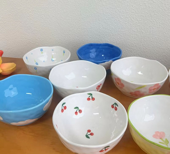 סין מינימליסטי פשוט צבוע ביד קערת קרמיקה בלתי סדירה וצלחת ערכת קינוח פירות סלט בעל ערך גבוה